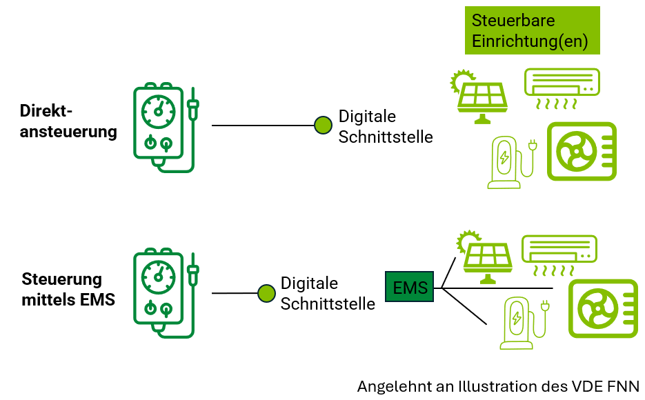 Grundsätzlich unterscheidet der §14a EnWG zwischen zwei Arten der digitalen Ansteuerung: