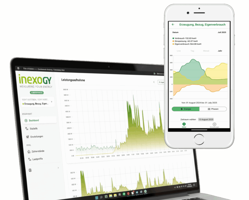 Das Energieportal von inexogy – im Browser und als App – bietet eine umfassende Visualisierung von Zählerständen sowie aktuellem und historischem Energieverbrauch bzw. der Erzeugung. Smart-Meter-Nutzer erhalten detaillierte Analysen und können auf Veränderungen im Verbrauch gezielt reagieren.
